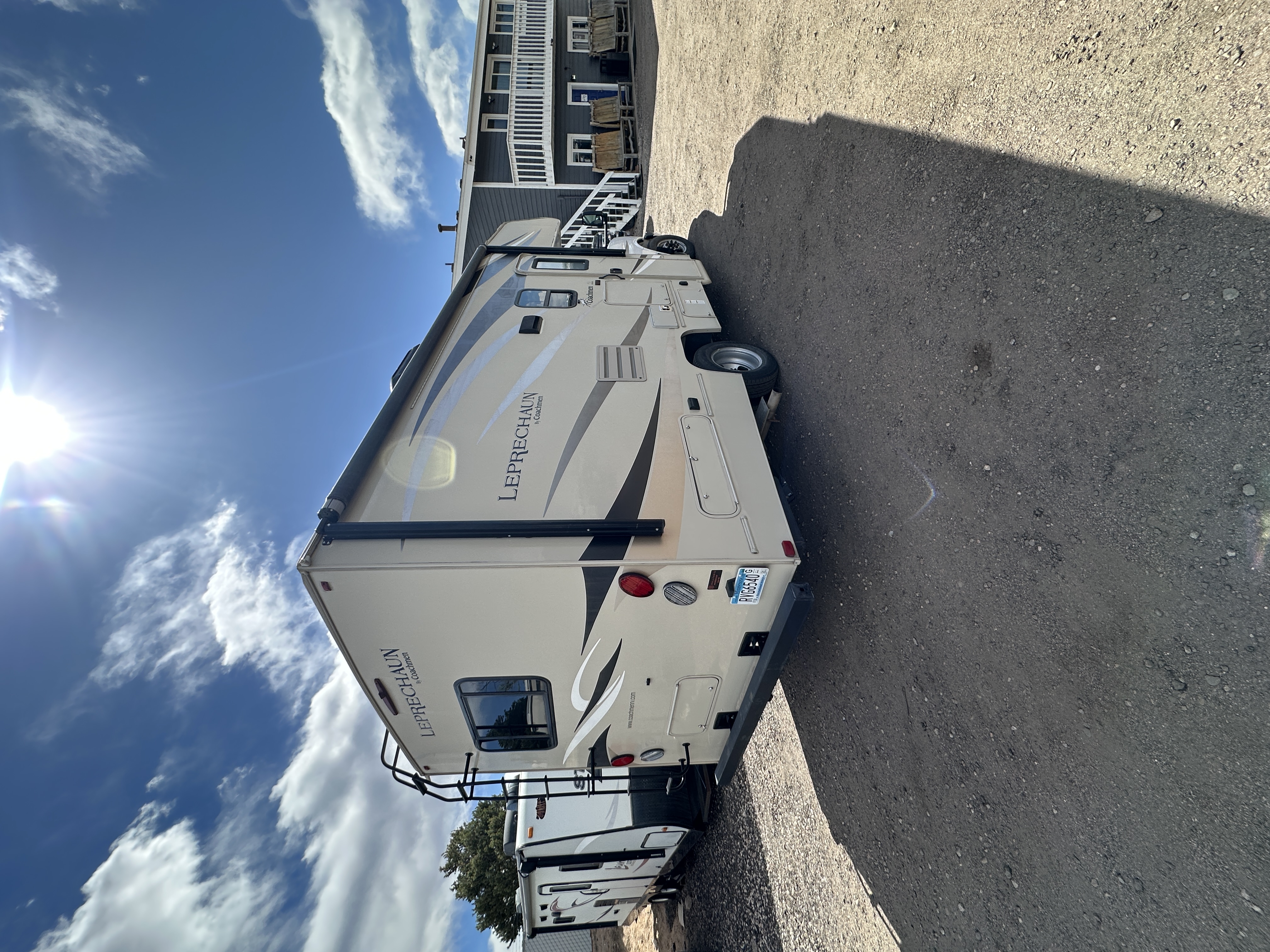 Owning something Better is a reflection of you everyone will appreciate. Your family will appreciate the expansive list of standard equipment like back-up camera, power awning, slideroom awning(s) and 50 gallons of fresh water. Better includes the safety and durability of steel framed floors, and 2 sidewalls built with Azdel Superlite that can be customized with your choice of available graphics-standard graphics, carmel colored fiberglass or rich full body paint. Inside your Leprechaun your family and friends will enjoy the long list of rich appointments including Raised Panel cabinetry, Night Shades, Upgraded flooring and Upgraded Furniture. Treat yourself to something better you deserve a Coachmens Leprechaun!